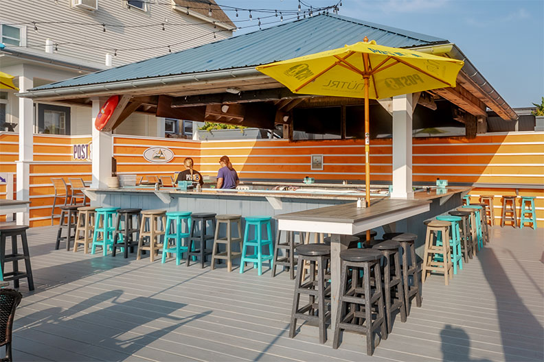McGuirk’s Ocean View Hotel is a family-friendly oceanfront hotel in Hampton Beach, NH, offering 10 classic beach-themed rooms with private bathrooms, Wi-Fi, cable TV, AC, and beverage refrigerators. Renovated in 2013, our centrally located hotel has been welcoming guests since 1991. Enjoy stunning ocean views, daily live music, and on-site dining at our indoor McGuirk’s Restaurant or outdoor tiki-themed bars, Post 8 and The Hideaway. Perfect for families, couples, wedding groups, and Canadian visitors, McGuirk’s combines comfort, convenience, and entertainment—making it one of the best Hampton Beach hotels on the boardwalk.